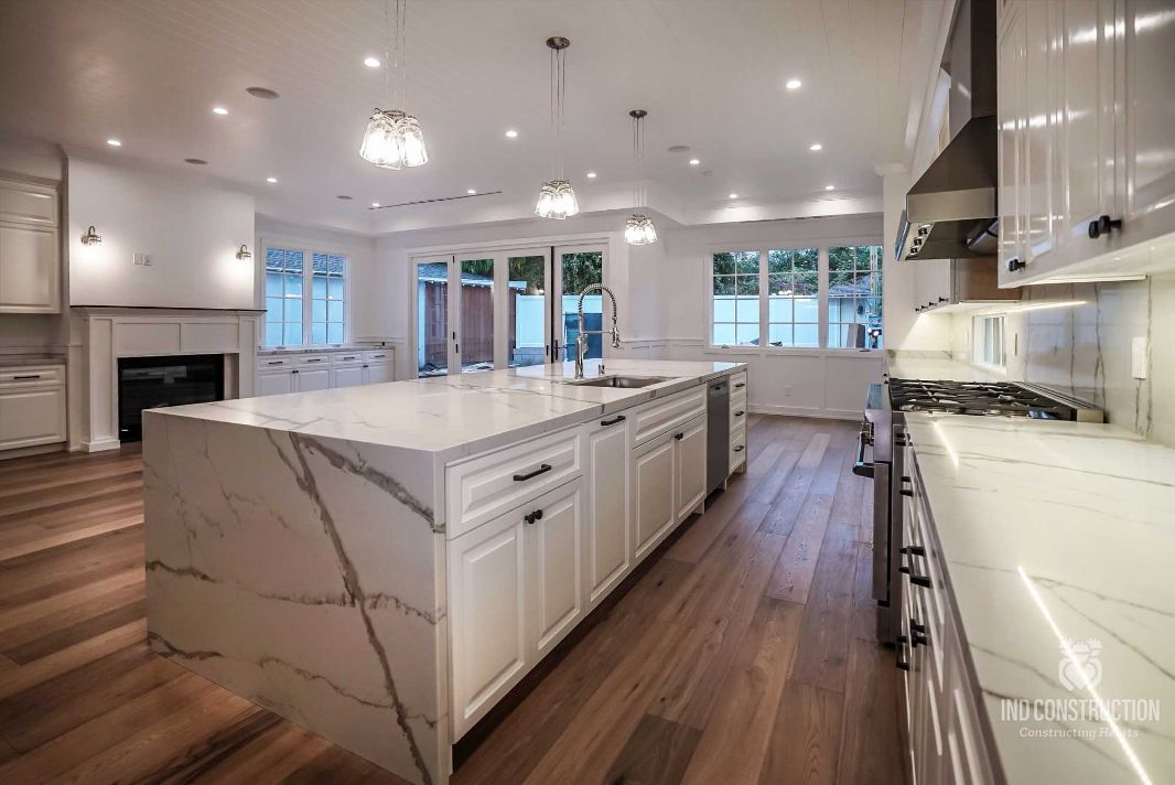 The newly remodeled area in a breathtaking expanse of open-plan living. High ceilings and recessed lighting complement the flood of natural light through large windows and glass doors, creating a bright and airy atmosphere in the living area provide comfort without compromising on style, while the adjacent dining space, with its modern table and chairs, is prefect for both intimate dinners and larger social gatherings.